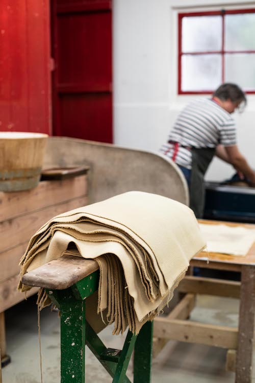 Ella photographed the wonderful volunteers at NT Quarry Bank in Cheshire, to celebrate our collaboration using their incredible striped deadstock fabric, that you can shop below.