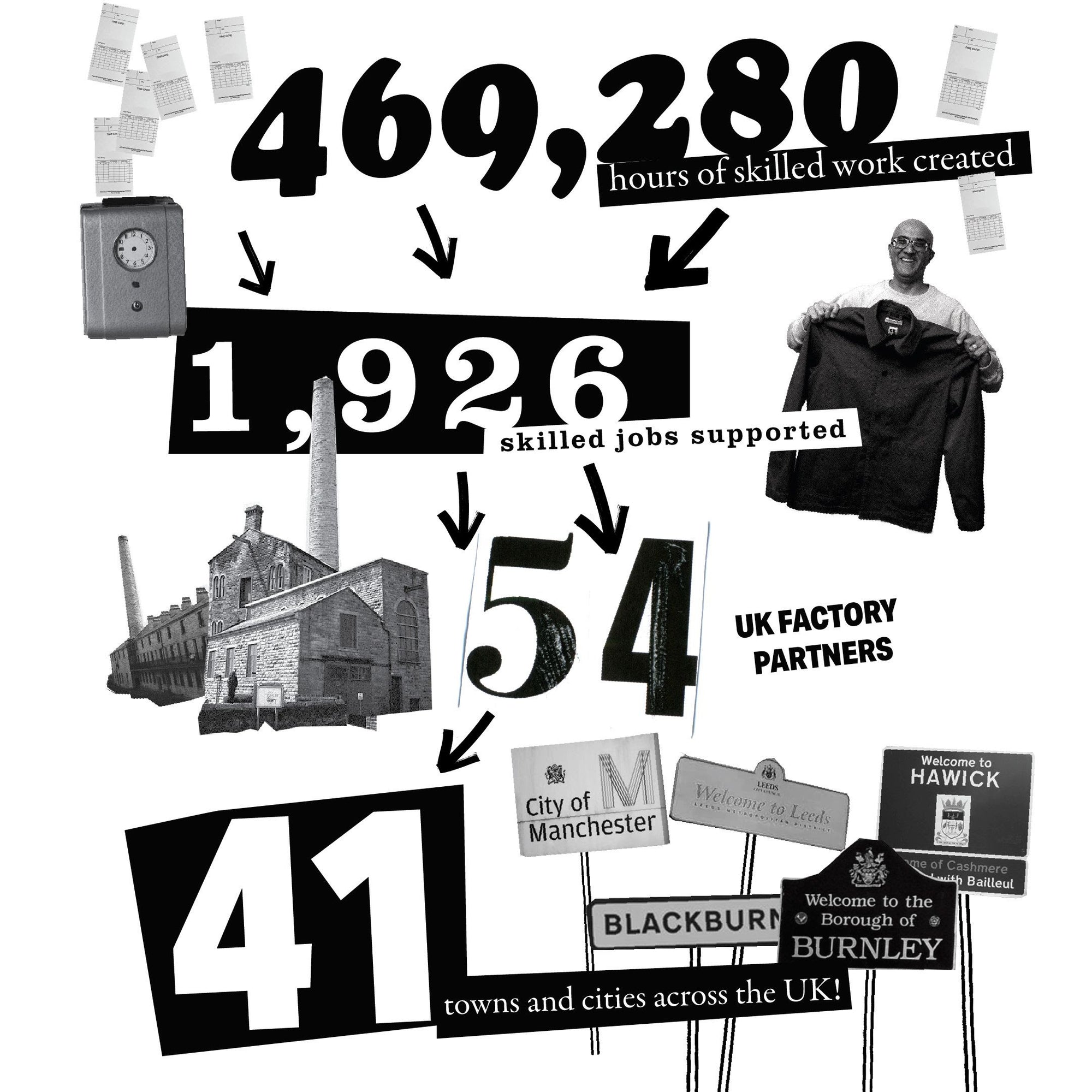 Our measures are simple: number of jobs we support, number of factories and communities we work with, and most importantly, the number of hours of skilled work we create. I remember my enormous excitement when we hit 1,000 hours, and 10,000. Today we can announce we’ve got to 469,280! BOOM! It’s a massive number. And most importantly this is skilled well paid work created in some of the UK’s most socially and economically deprived communities, places that really need the jobs.