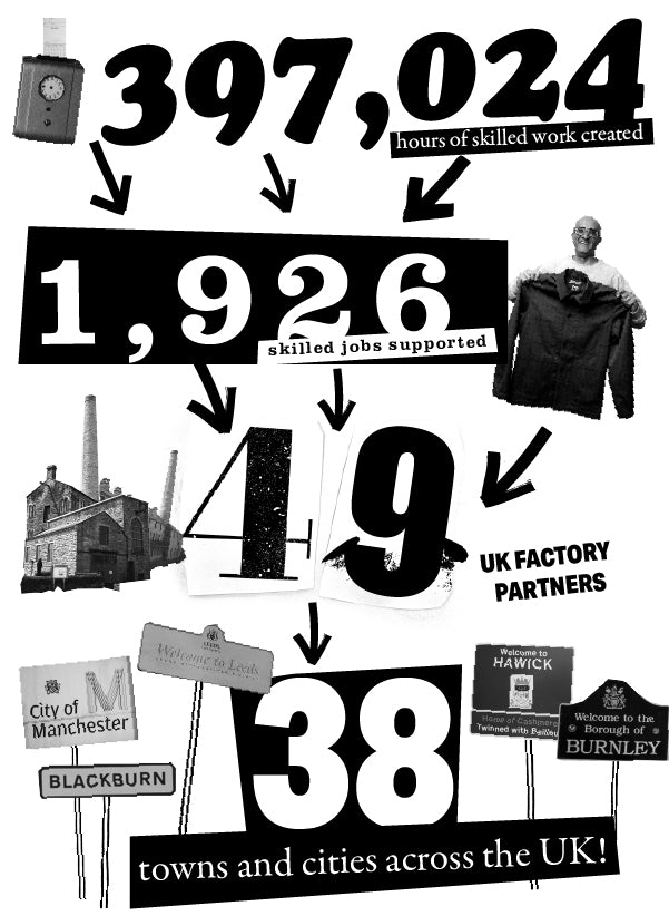 As most of you know, we are a social enterprise, and creating good skilled work here in the UK is the primary measure of our success. And 2024 has been another phenomenally successful year. As of a couple of weeks ago, when we added up the numbers created, we had hit a brilliant 397,024 hours of work created. So, thank you all for your continued support. Every sock, t-shirt, jumper, pair of chinos, jeans or undies you’ve bought from us has helped to increase the positive impact we’re having in communities right across the UK, but most especially in Lancashire, Yorkshire, the East Midlands, the south of Scotland and south Wales, areas with some of the highest levels of social and economic deprivation in the country. Places where skilled work really matters. So thank you. It’s a brilliant thing you’re all doing.