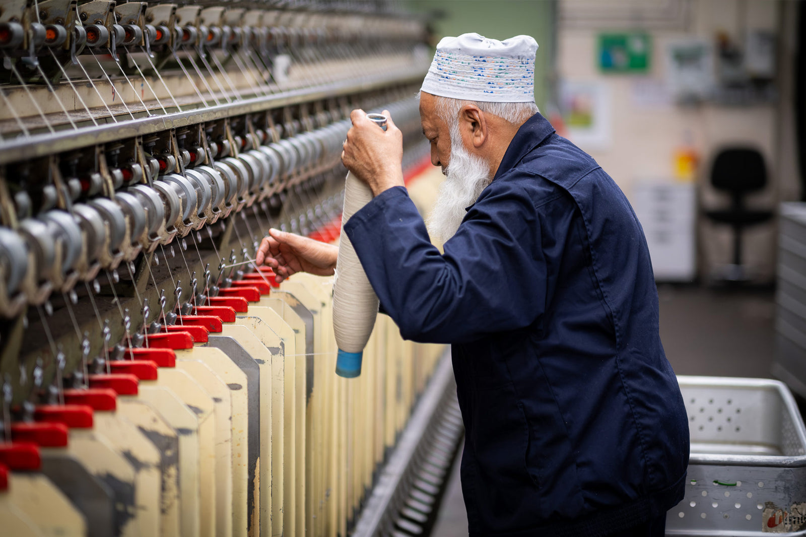 Our blankets are spun, woven and stitched in Pudsey in Leeds by AW Hainsworth, one of the oldest and best woollen mills in the world, maker of some of the worlds most famous blankets, from the amazing holey cellular ones used by the NHS, to a very famous Canadian one that we can’t talk about. In the pictures you can see our blankets being spun and woven in the mill, and some of the brilliant skilled staff who make them.
