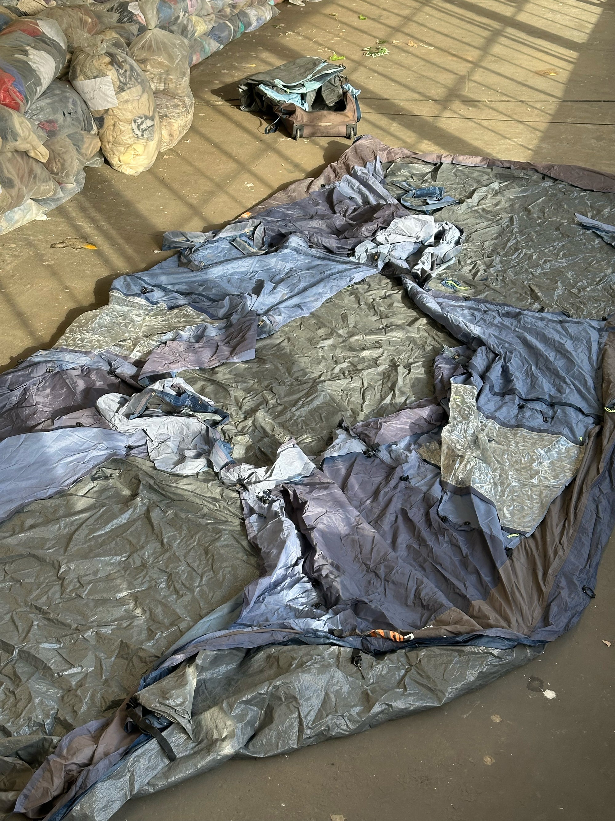 We’re very happy to unveil a new collaboration that we've been working on, this time with ReTribe, a small Sheffield studio with a big mission. Founded in 2023 by outdoor clothing designer Laura Mason, it all began when she set out to salvage a single tent to turn into a jacket. Instead she found fields full of abandoned tents, all heading straight for landfill, and decided to do something about it. Since then Laura and her small team have rescued more than 550 tents, each one collected by hand, scrubbed clean in an industrial washer and cut down into neat reusable panels.