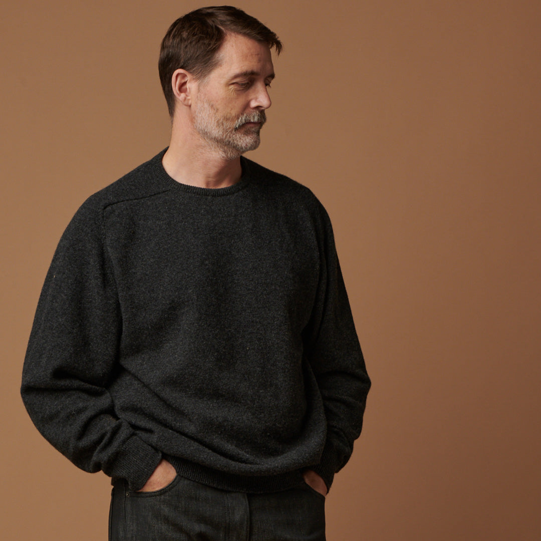 The crew neck jumper is made using 2 Ply, 100% Lambswool all knitted in the borders of Scotland.