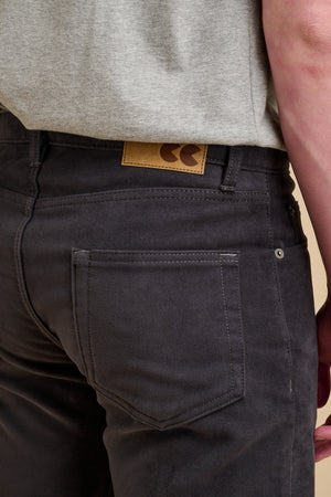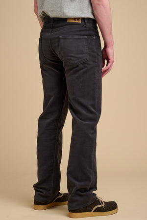 Straight leg but cut with more ease than our straight cut five pocket (about an inch wider through the leg) for a more relaxed fit. Josh is 6ft and is wearing size 32W 32L.