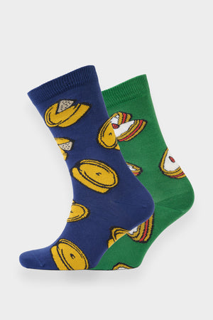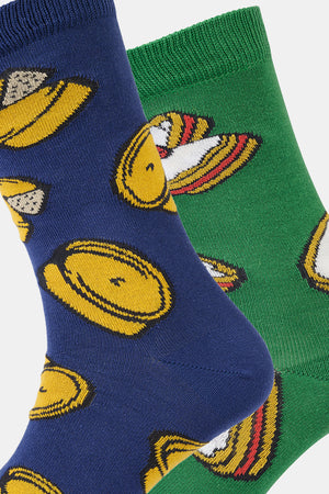 Scotch pie and empire biscuit design knitted sock. This pack contains two pairs of socks.