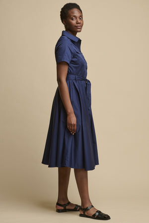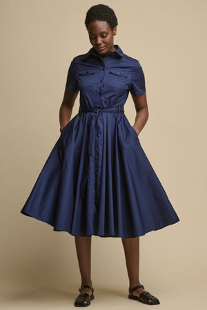 Full Skirted Phoebe Trench Dress - Navy