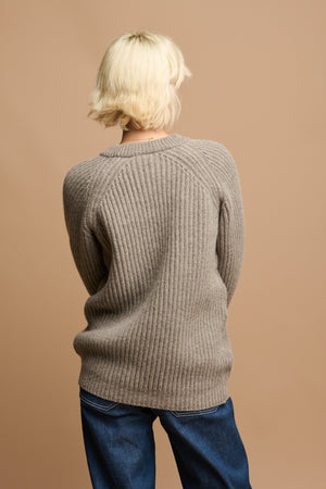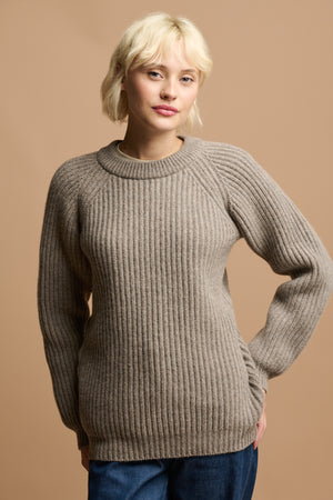 Ribbed knit jumper with raglan sleeves, inspired by the traditional fisherman’s jumper.