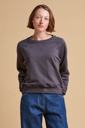 Standard fit. This garment is made from 100% natural cotton jersey. It is normal for this product to exhibit a small amount of shrinkage after the first couple of washes. This product may shrink by as much as one full size so we recommend that you size up from your regular size to allow for this shrinkage after washing. Saskia is wearing a size 8.. This raglan sweatshirt is available in UK sizes 6 to 18, if you like the style of this sweatshirt but require a different size, please see our women's sweatshirt for sizes 18 to 24-26.