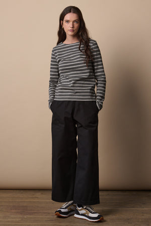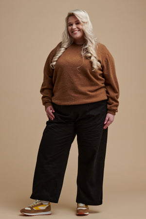 Relaxed fit with slightly tapered, wide leg. Our model Lily is 5'2'' and wearing the UK 18 regular, Orla is 5'8'' wearing size 8 regular.