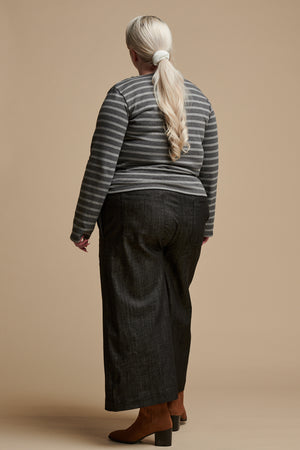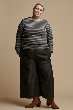 Cropped wide leg, two side welt pockets and two back patch pockets, elasticated waistband,