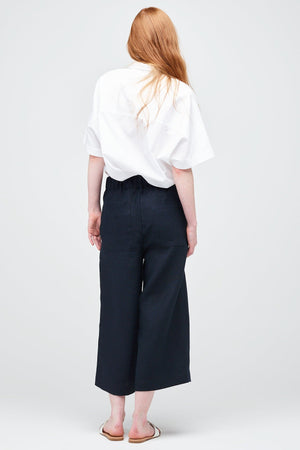 Wide Leg Elasticated Waist Linen Short PJ Trousers - Navy