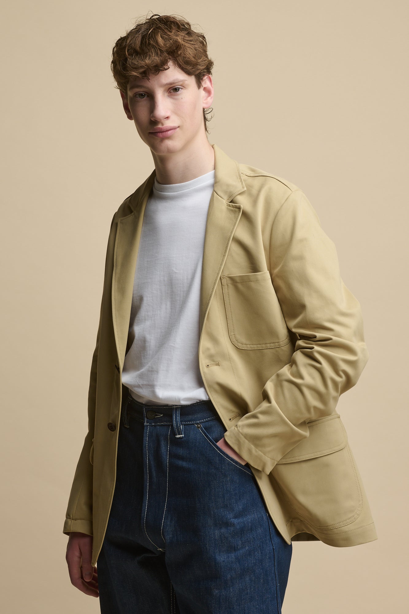 Our chore jacket is a perennial summer favourite, it’s a great lightweight smart option for summer events, and a versatile packable utility travel jacket, great paired with a cotton trouser, and worn loose with a cotton short.