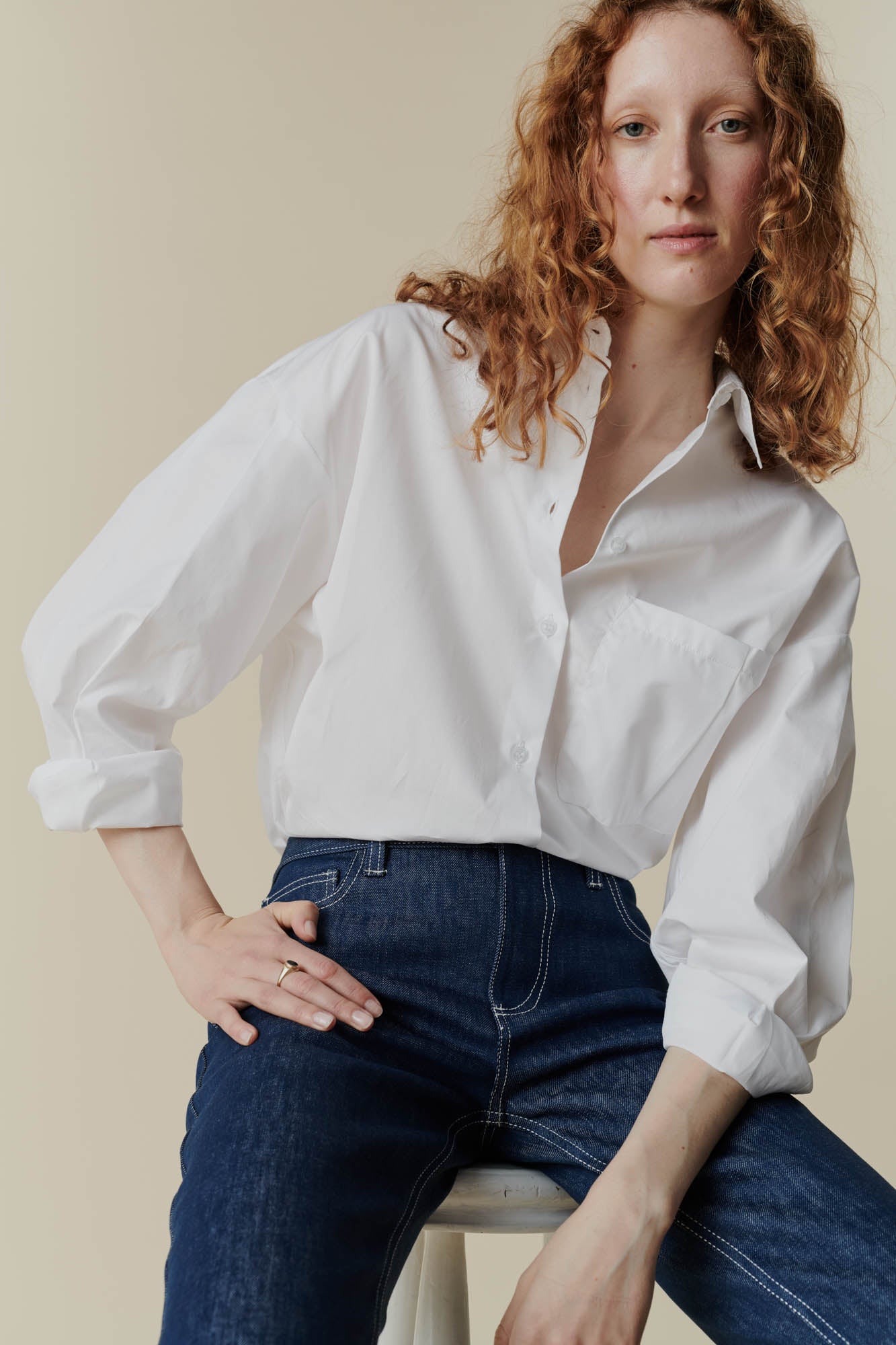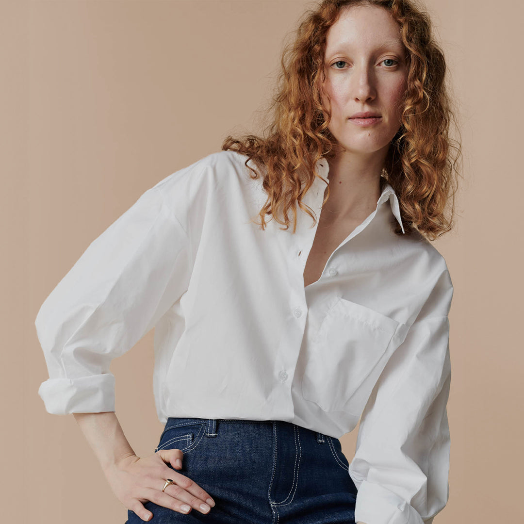 "My mum lives in a classic white shirt, so our oversized Esme Shirt is what she'll be receiving this Mother's Day. It's cut from a fantastic quality cotton poplin and sewn at our Blackburn factory"