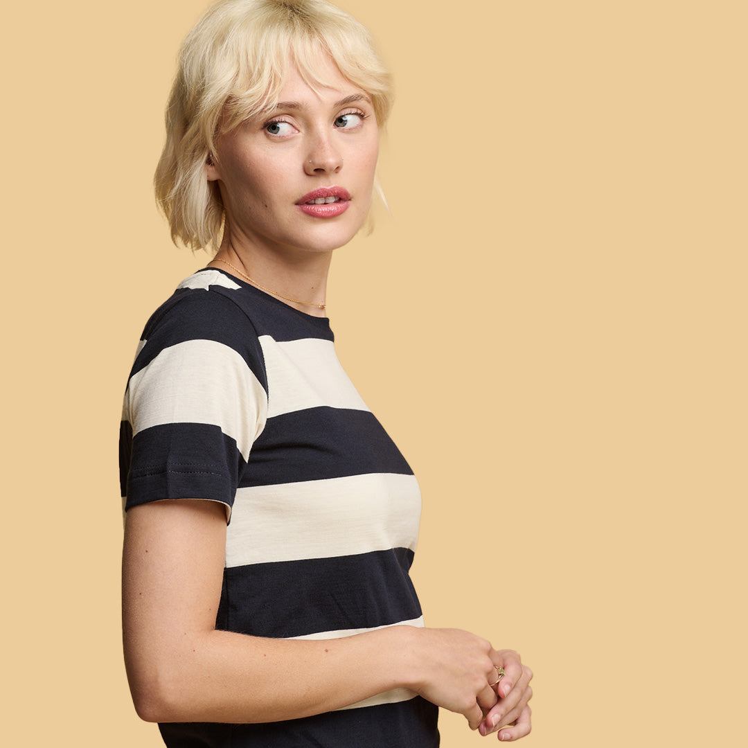 Nothing says summer like a stripe; deck chairs, wind-breaks, bathing huts, and beach brollies, stripes and the seaside go hand in hand. We’ve got lightweight easy cotton shirts and dresses, striped t shirts and Bretons, and stripy rugby jerseys, a perfect beach throw on for when the sun disappears behind a cloud.