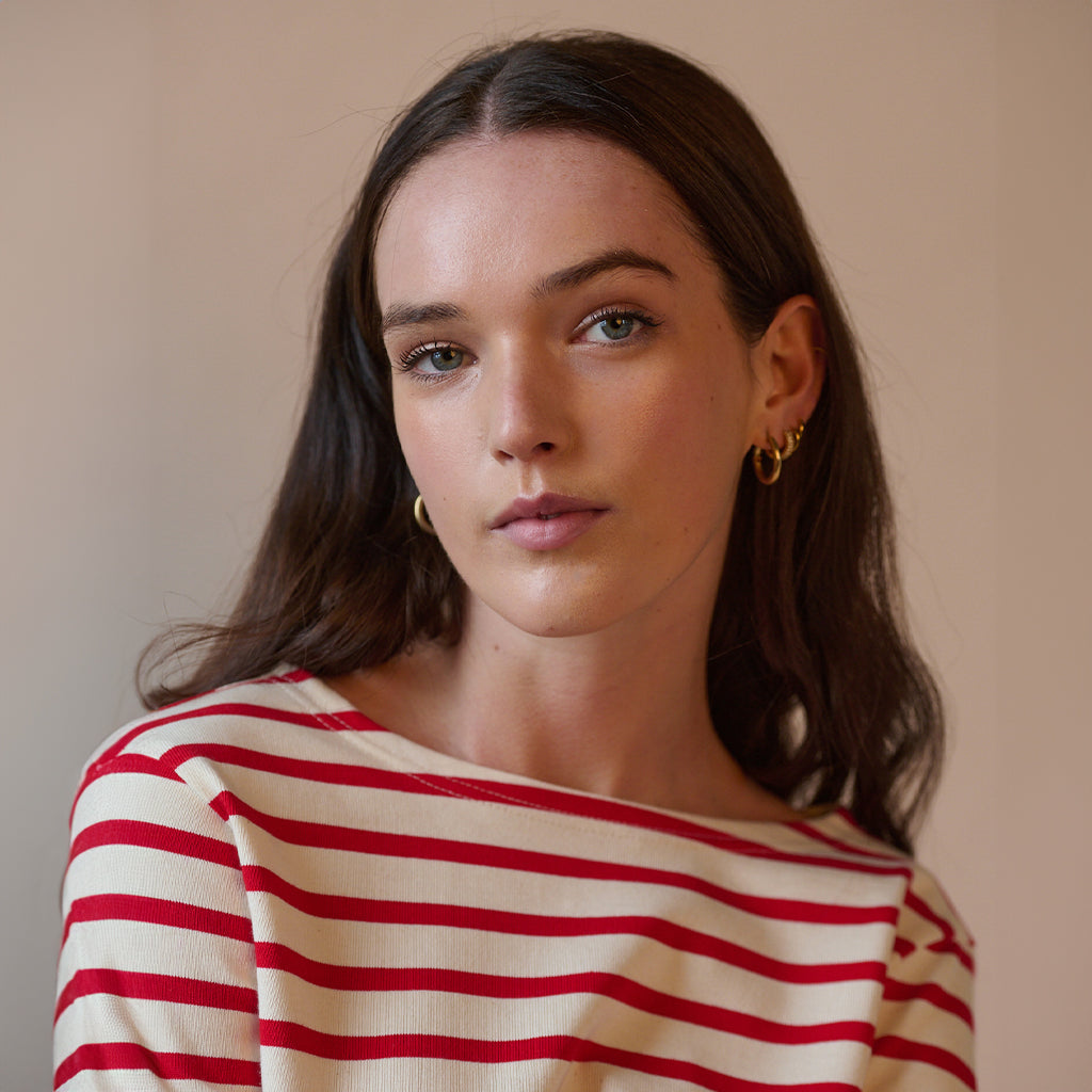 It was in the 1920’s that Coco Chanel popularised the Breton, making it one of French fashion's most enduring exports. Classically composed of a narrow navy stripe with a wider white stripe in a mid weight pure cotton jersey, it was named for the uniform worn by the Breton sailors of the French navy. Today few wardrobes are without a Breton or two in one or other of is various modern forms.