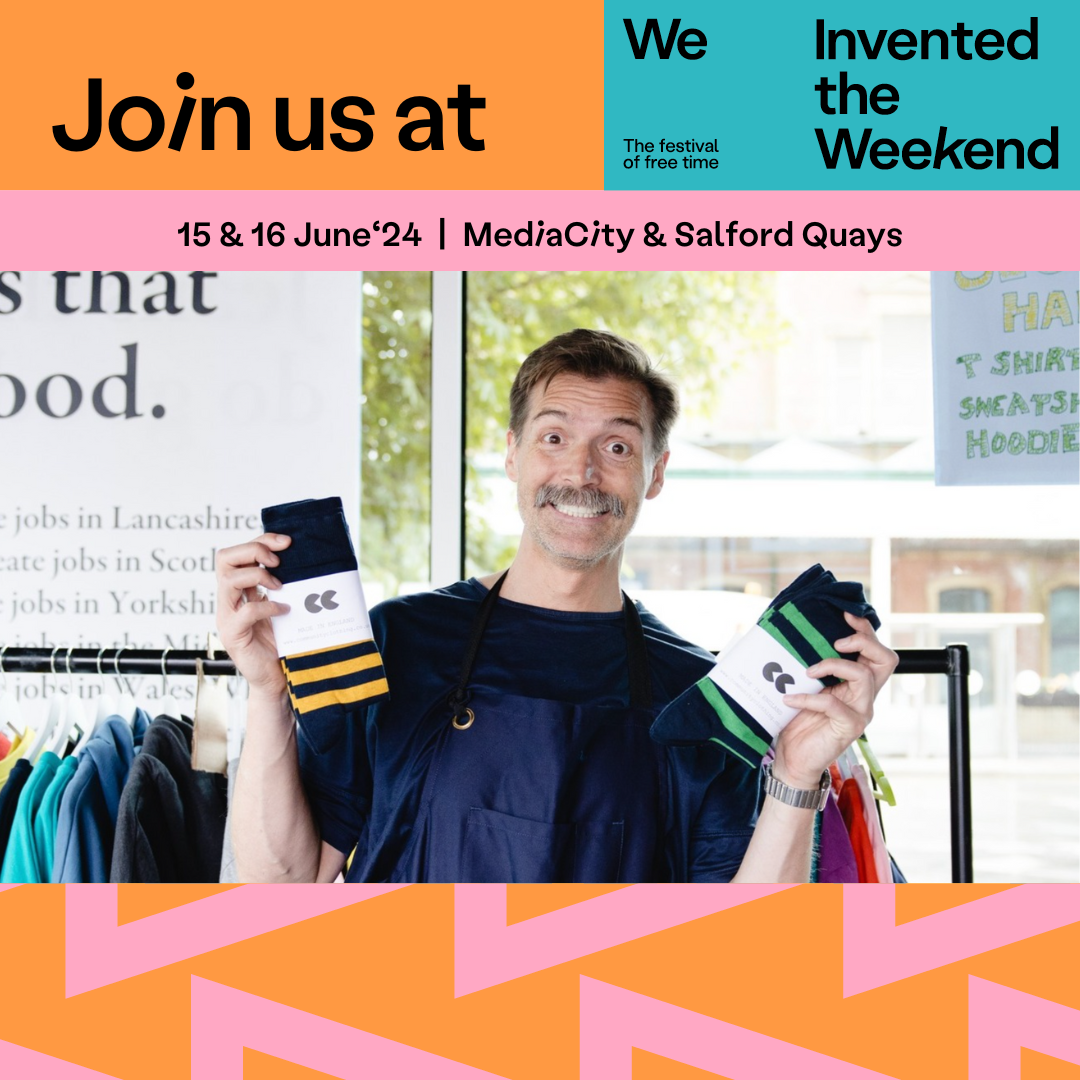 Join us at We Invented the Weekend Festival at Media Quays in Salford, a joyous celebration of the workers of the north of England fighting for, and winning the right to, two days off work each week. This year we’ll be running our own Big Community Jumble Sale, selling second hand Community Clothing clothes, slight factory seconds, shoot samples, studio samples and various other pieces we have unearthed at the various factories we work with. Its all brilliant stuff, and will all be sold for about a quarter of what a new version would cost you.