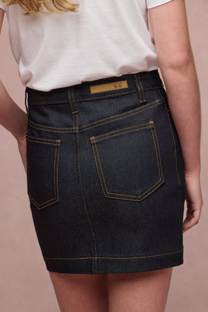 Mid-rise waistline, cut close to the body through the length ending mid-thigh. Erin is 5'10'' and is wearing a size 8.