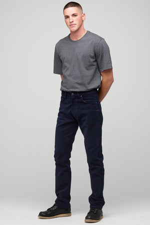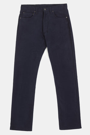Classic five pocket moleskin jean using the same block pattern as our straight cut jean, fully riveted, zip fly, chain-stitched hem, felled seams.