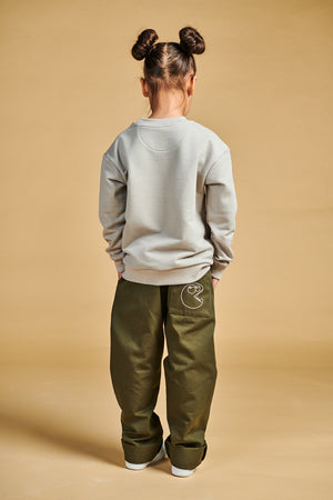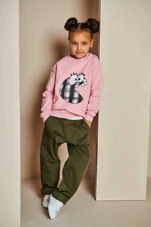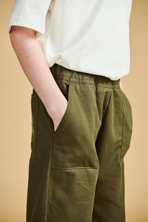 Regular fit, elasticated waistband with drawcord. Quinn is wearing size 6-7 years, Seb is wearing 12-13.