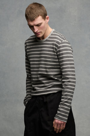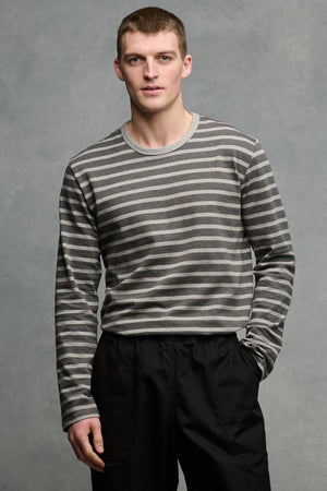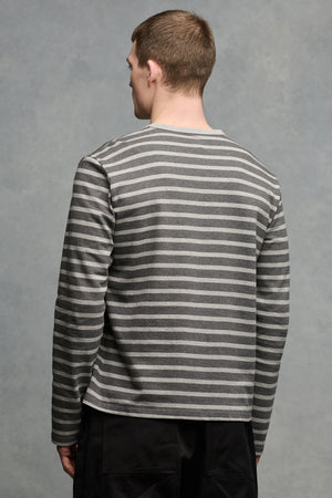 Yarn spun in Dukinfield, jersey knitted in Leicester, cut and sewn in Blackburn.