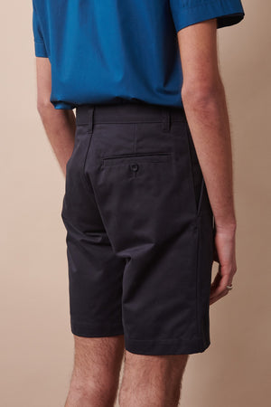 Flat front, zip fly and button. Two side pockets and one back pocket with button.