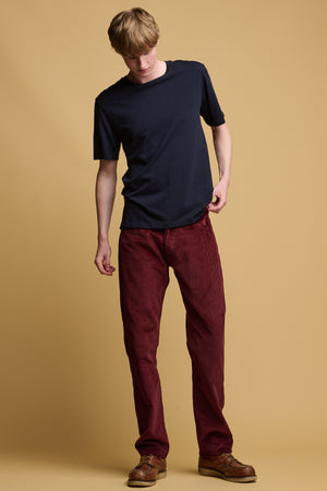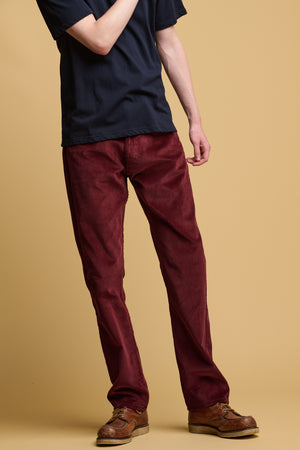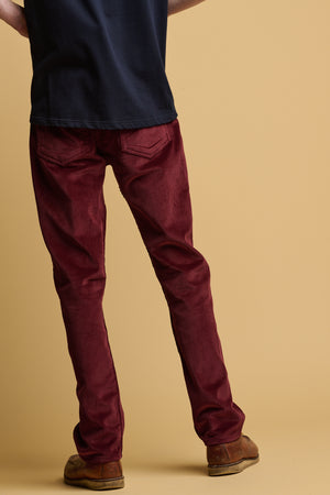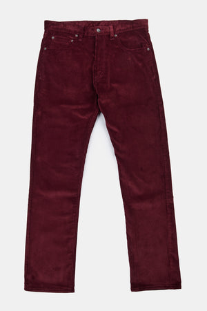 Classic five pocket corduroy jean using the same block pattern as our straight cut jean, fully riveted, zip fly, chain-stitched hem, felled seams.