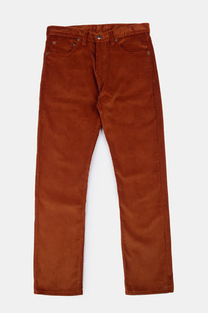 Classic five pocket corduroy jean using the same block pattern as our straight cut jean, fully riveted, zip fly, chain-stitched hem, felled seams