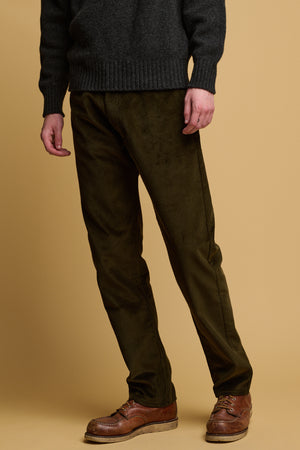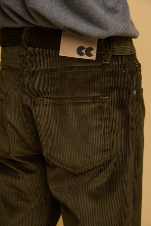 Straight Cut Corduroy Five Pocket Jeans - Dark Olive