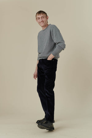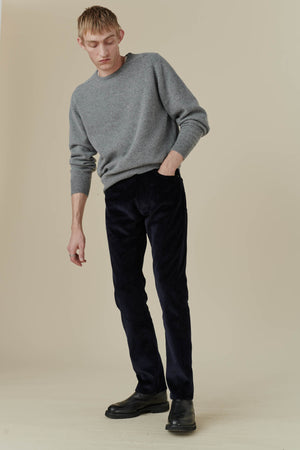 Our cord jeans are the same cut as our classic straight cut jeans. Slim fit, cut with a straight leg. Dylan is wearing size 32 regular.