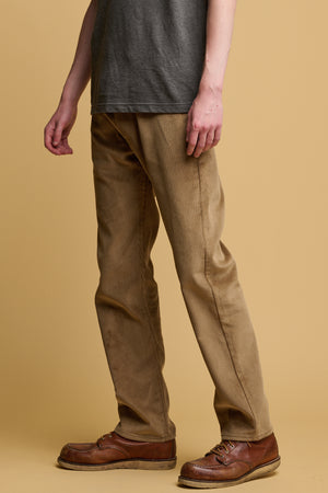 Classic five pocket corduroy jean using the same block pattern as our straight cut jean, fully riveted, zip fly, chain-stitched hem, felled seams