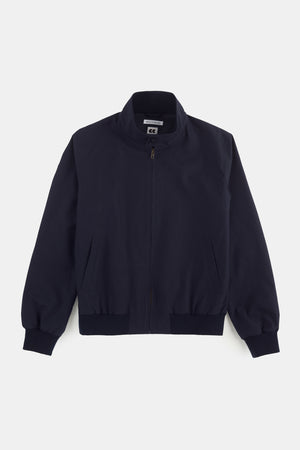 Zip front, two button stand collar, ribbed cuff and waistband, fully lined, single internal pocket The Harrington is fully lined in a 65% polyester, 35% cotton satin lining