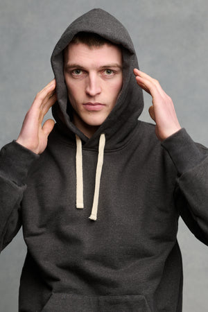 - Hood, front pocket - Rib cuff and waist