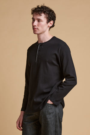 Standard fit. This garment is made from 98% natural cotton jersey. It is normal for this product to exhibit a small amount of shrinkage after the first couple of washes. This product may shrink by as much as one full size so we recommend that you size up from your regular size to allow for this shrinkage after washing. Conor is 6'1'' and wears a size medium.