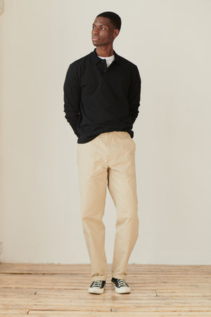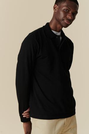 Long sleeve, ribbed collar and sleeve cuffs, 2 button placket with branded buttons, logo embroidery on chest