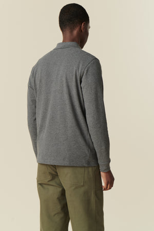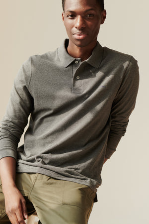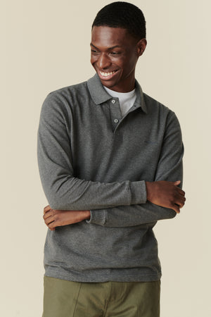 Long sleeve, ribbed collar and sleeve cuffs, 2 button placket with branded buttons, logo embroidery on chest