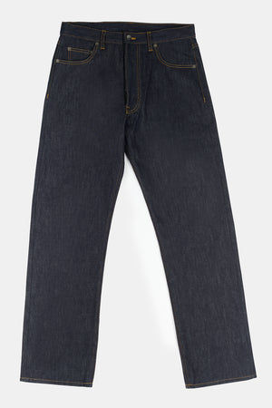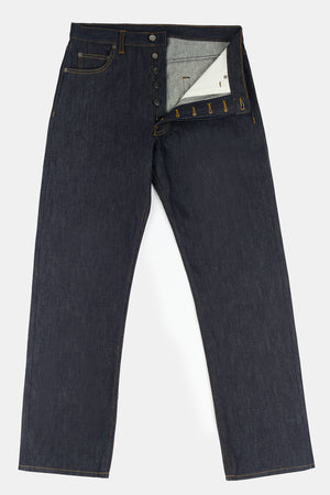 5 pocket relaxed fit straight leg jean with traditional button fly. Premium fully riveted construction with chain stitched hem.