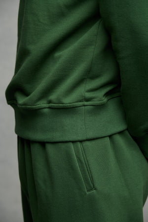 Medium weight 335g 100% organic cotton loopback jersey, 100% cotton drawstring. Fabric knitted and dyed in Leicester.