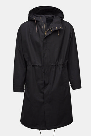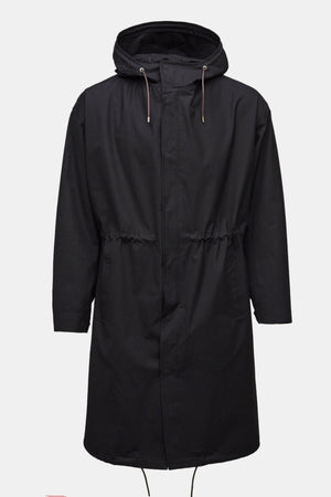 Heavyweight zip and storm flap. 2 external pockets, 1 internal pocket. Waist, hem and hood drawstrings. Adjustable snap cuffs
