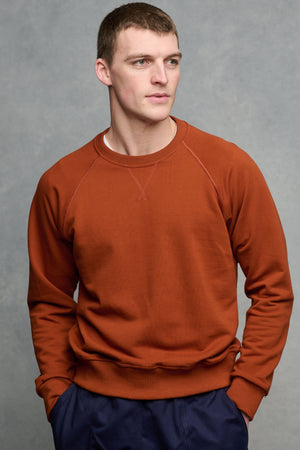 Crew neck, raglan sleeve. Rib cuff, waist and neck