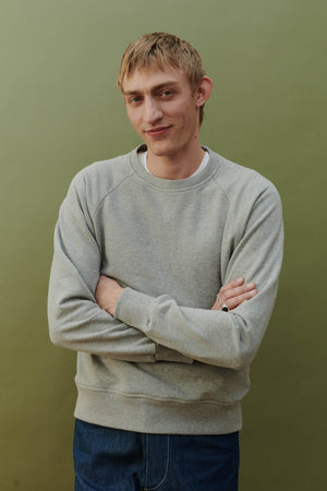 Crew neck, raglan sleeve. Rib cuff, waist and neck