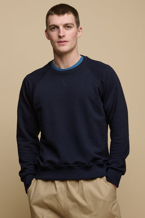 Crew neck, raglan sleeve. Rib cuff, waist and neck