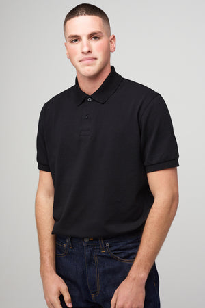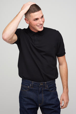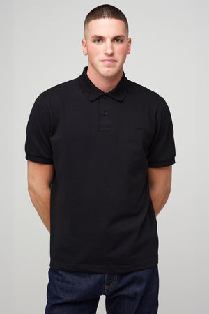 Ribbed collar and sleeve cuffs 2 button placket with branded buttons logo embroidery on chest