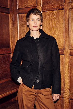 The Nancy is a simple and chic everyday short wool coat, suitable for both smart, sporty or casual wear. Its pure wool melton fabric keeps its shape fantastically well, is warm and highly water resistant making it an ideal three season coat.