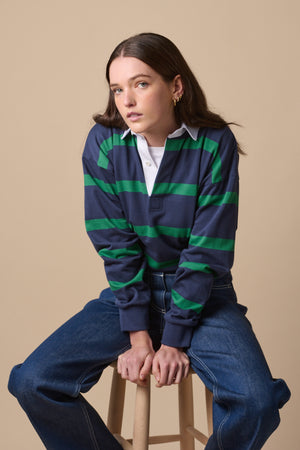 Classic rugby shirt in heavy duty jersey 3 button reinforced placket Woven collar