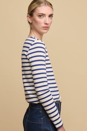 Yarn spun in Dukinfield, jersey knitted in Leicester, cut and sewn in Blackburn.
