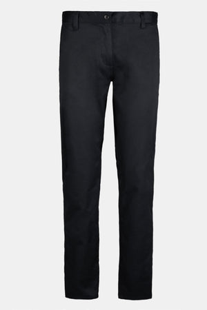 Flat front. Zip fly and button. Two side pockets, rear pocket on right side.