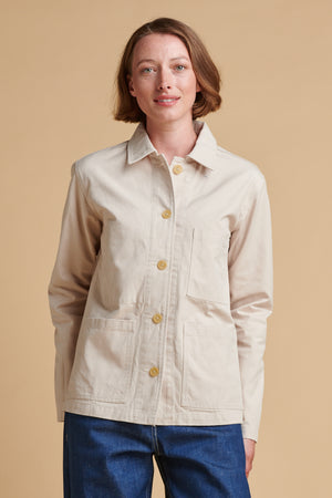 Regular fit, classic cut chore jacket. Saskia is wearing a size 8.