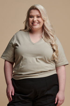Regular fit. Sizes 20-22 and above have a slight curved hem. Lily is wearing a size 20-22.