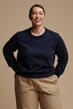 Standard fit. This garment is made from 100% natural cotton jersey. It is normal for this product to exhibit a small amount of shrinkage after the first couple of washes. This product may shrink by as much as one full size so we recommend that you size up from your regular size to allow for this shrinkage after washing.Our model Isabella is wearing a size 20-22. This sweatshirt is available only in UK sizes 18 to 24-26, if you like the style of this sweatshirt but require a different size, please see our raglan sweatshirt we offer in sizes 6-18.