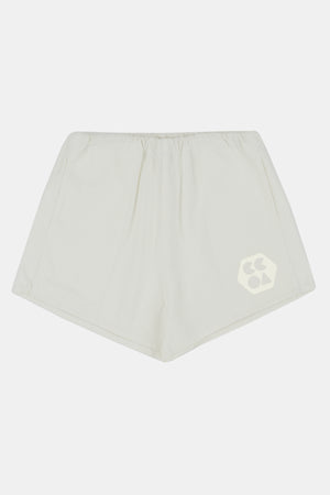 Heavyweight athletic short, elasticated waist with drawcord, two side pockets, unlined