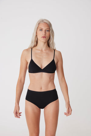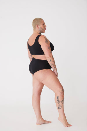 High rise, elastic waist classic mid leg shape. Please see our returns policy for underwear and socks